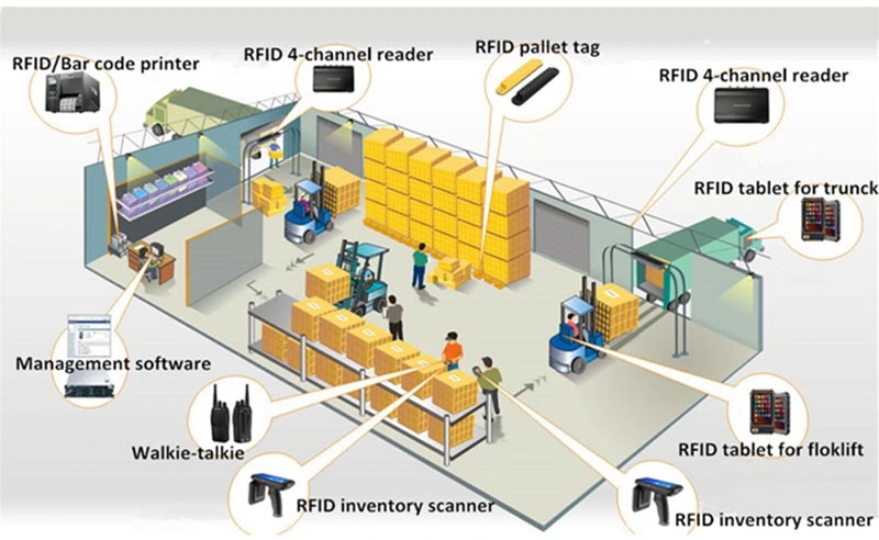 Warehouse staff can use RFID hand-held devices to move around in the warehouse to carry out inventory counts, which can avoid missed readings when the goods enter the warehouse. When the goods leave the warehouse, the forklift picks up the goods according to the instructions received, and the goods pass the RFID reader at the exit to prove that the goods have been out of the warehouse.