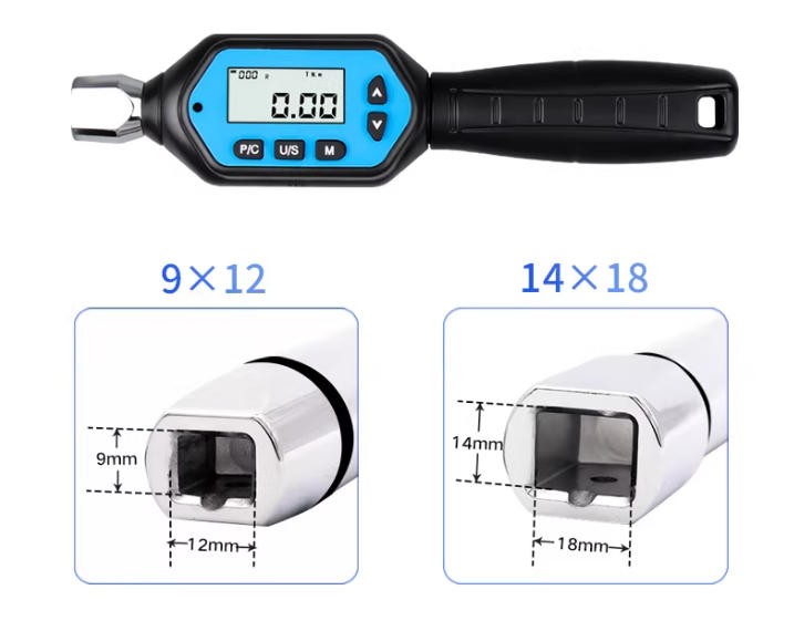 Interchangeable Head: Standard square drive heads (e.g., 1/4", 3/8", 1/2") with connection size 9×12mm.