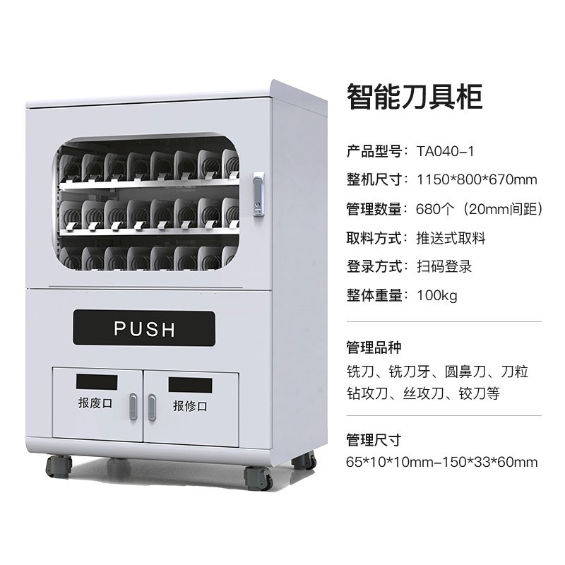 Smart cabinets feature a built-in operation management system, allowing employees to access materials, request repairs, scrap items, report lost items, and query inventory on-site.